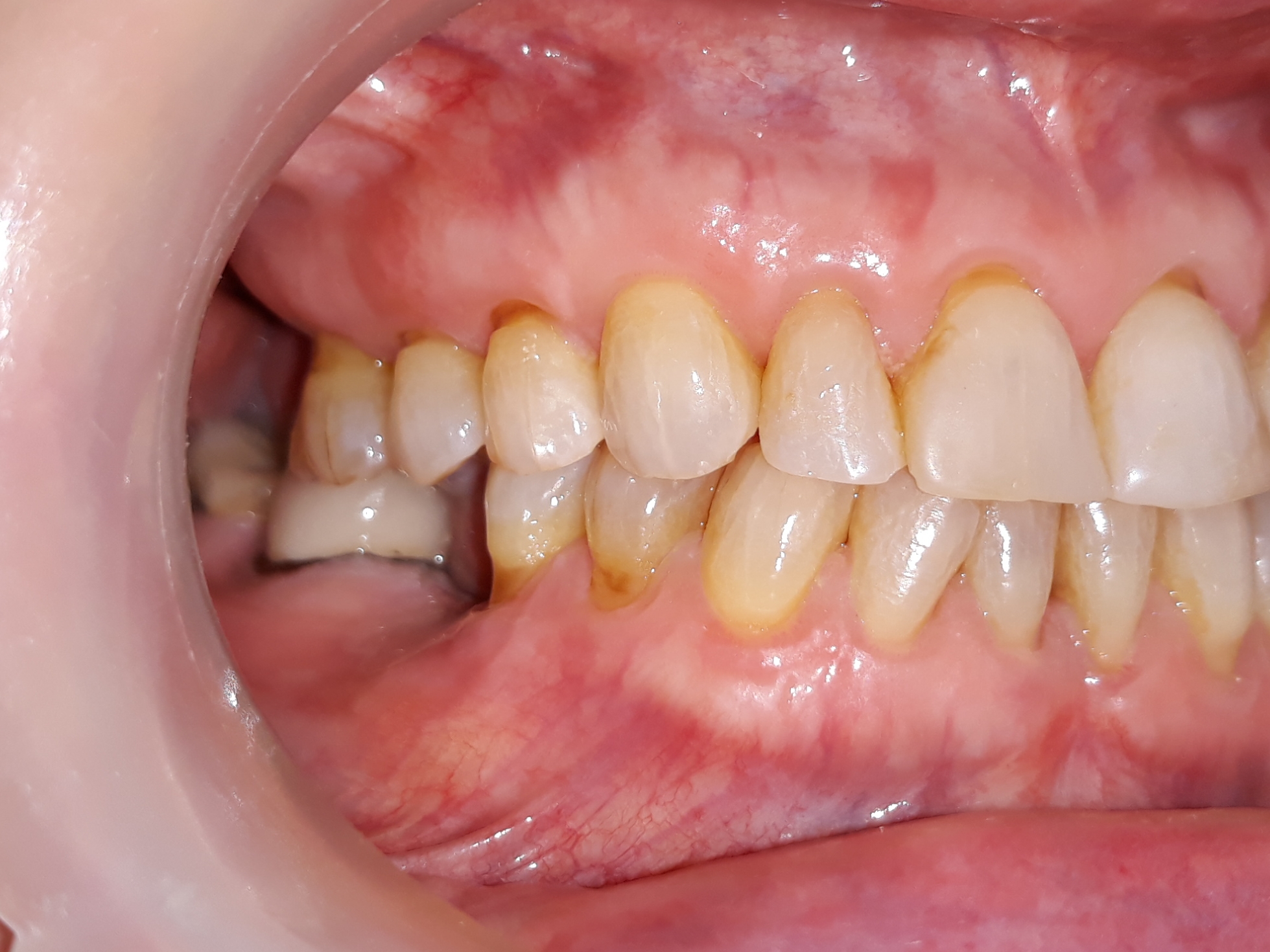 - The color and shape of front teeth were not good